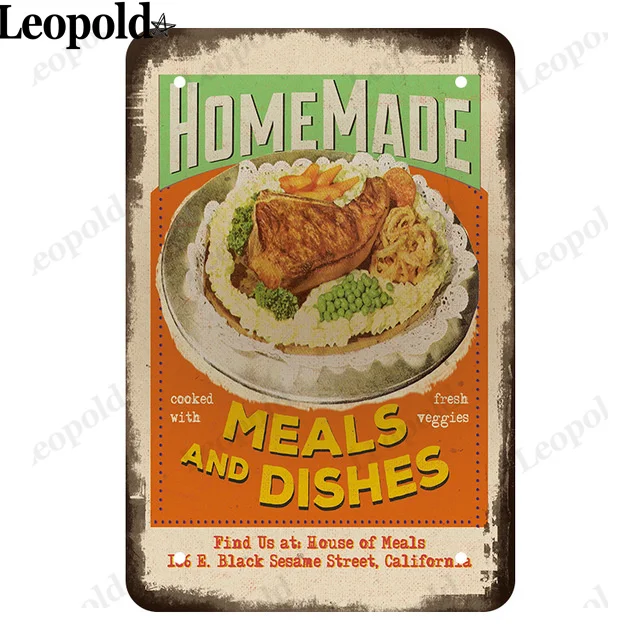 Металлический постер для кухни, настенный стикер в винтажном стиле ...