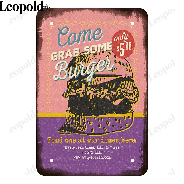 Пищевая серия, металлическая доска, пицца, бургер, ветчина, буквенн...