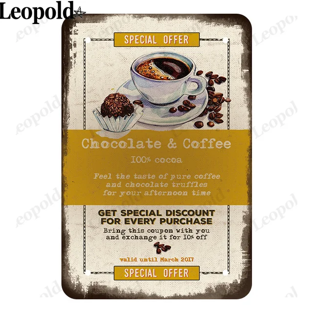 Металлический оловянный постер, карточка с надписью на кофе, настен...