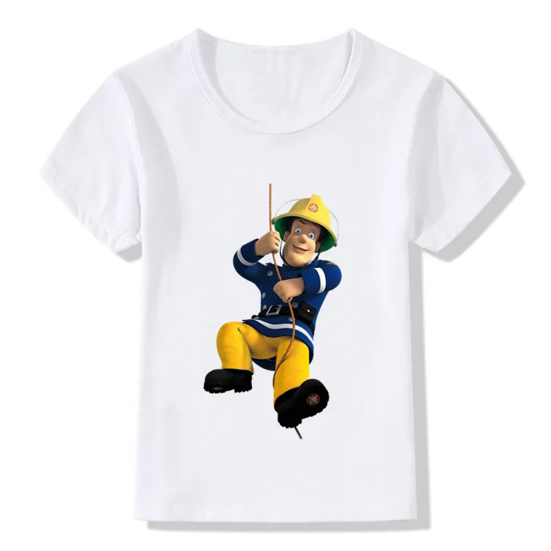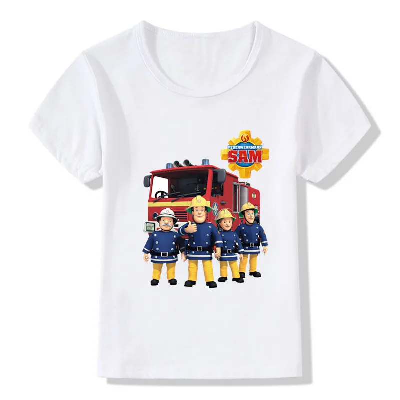 Новинка 2021, летняя детская футболка, Забавный мультяшный принт пожарный сам, футболка для мальчиков, одежда для маленьких девочек, детские топы с коротким рукавом, HKP2450