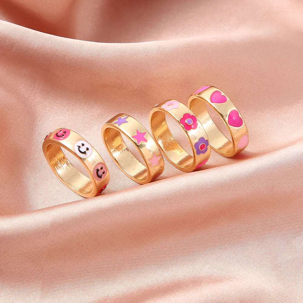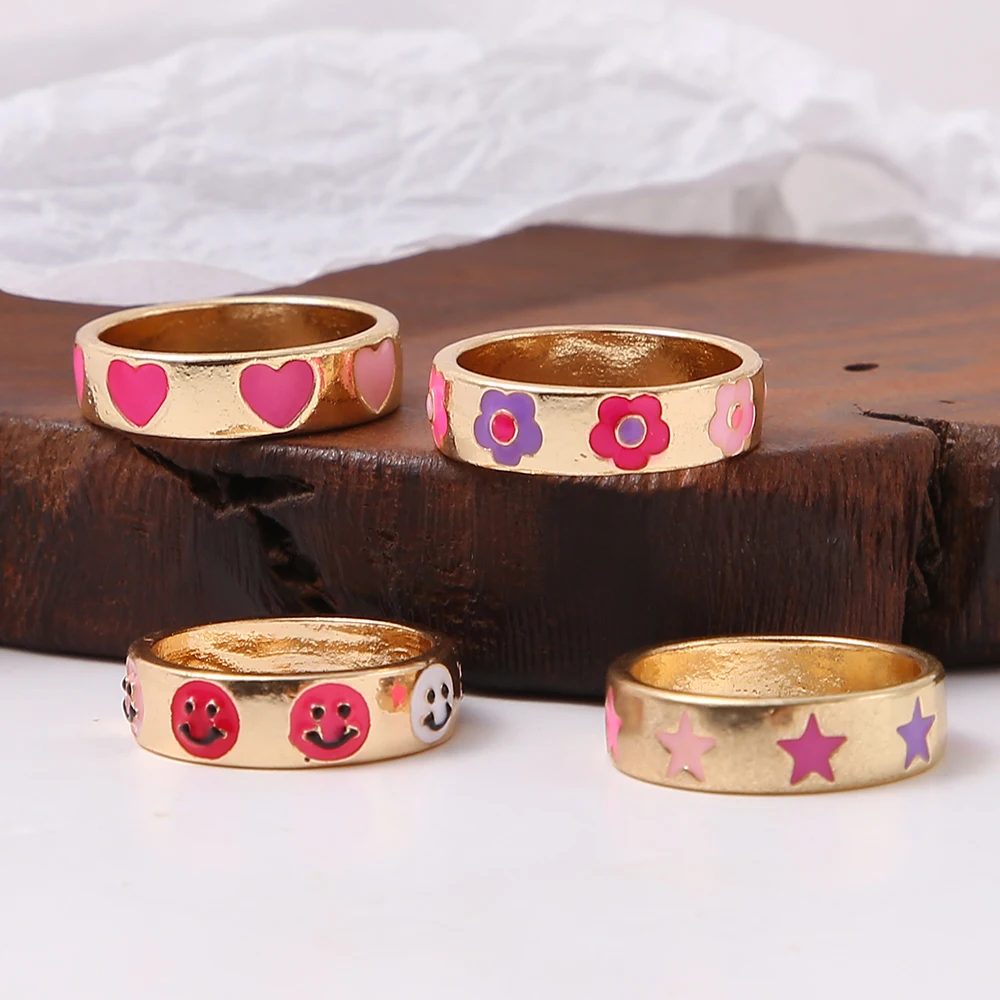Женские кольца в стиле панк, простые кольца в форме сердца и звезды с улыбкой, креативный дизайн, геометрический дизайн золотого цвета, конфетная бижутерия 2021, подарок