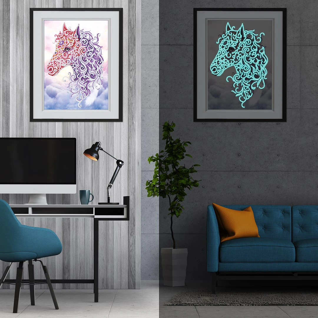 Творческая 5D светящаяся алмазная живопись Стразы особой формы "сделай сам" Цветная лошадь Алмазная мозаика вышивка крестиком Декор