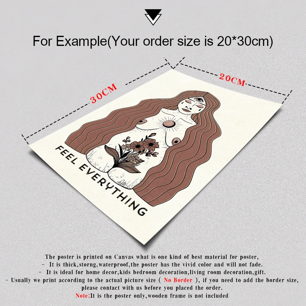 Художественный постер феминизма в стиле бохо, с изображением Солнца и Луны, богини, женщина, чувствует все, цитата, холст, картина, украшение на стену для врача, офиса, комнаты