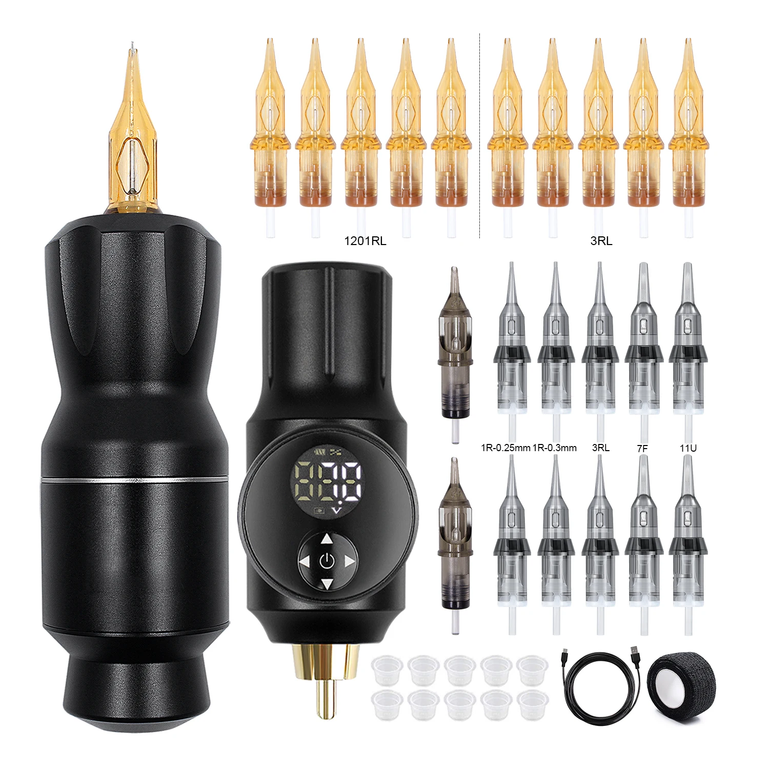 Комплект 1:1 шт. источник питания для татуировки1 шт. ручка для татуировки5 шт иглы татуировки5 шт. иглы PMU6 чернил для татуировки10 шт чернильный стаканчик1 шт. тату-бандажКомплект 2:1 шт. ручка для татуировки1 шт. соединительная линия12 шт иглы татуировки10 шт игл PMUКомплект 3:1 шт. источник питания для татуировкиКомплект 4:20 шт тату PMU needlsКомплект 5:20 шт иглы татуировки