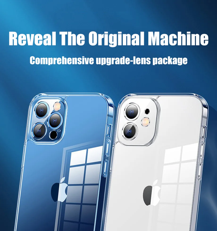 Прозрачный чехол для iPhone 12 11, ударопрочный чехол с полной защитой объектива для Apple iPhone 11 12 Pro Max 12 Mini, прозрачный чехол