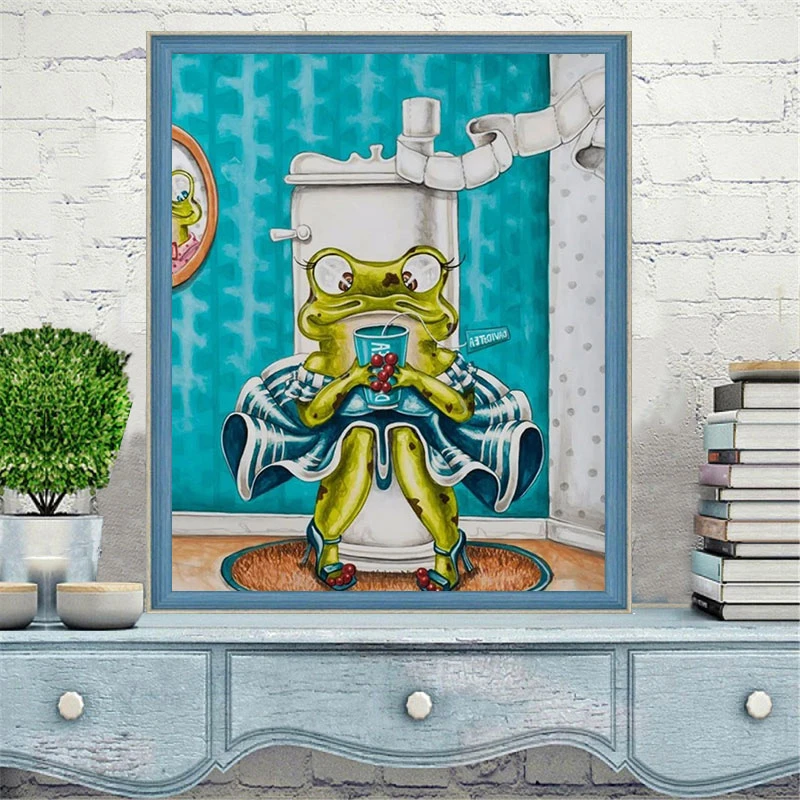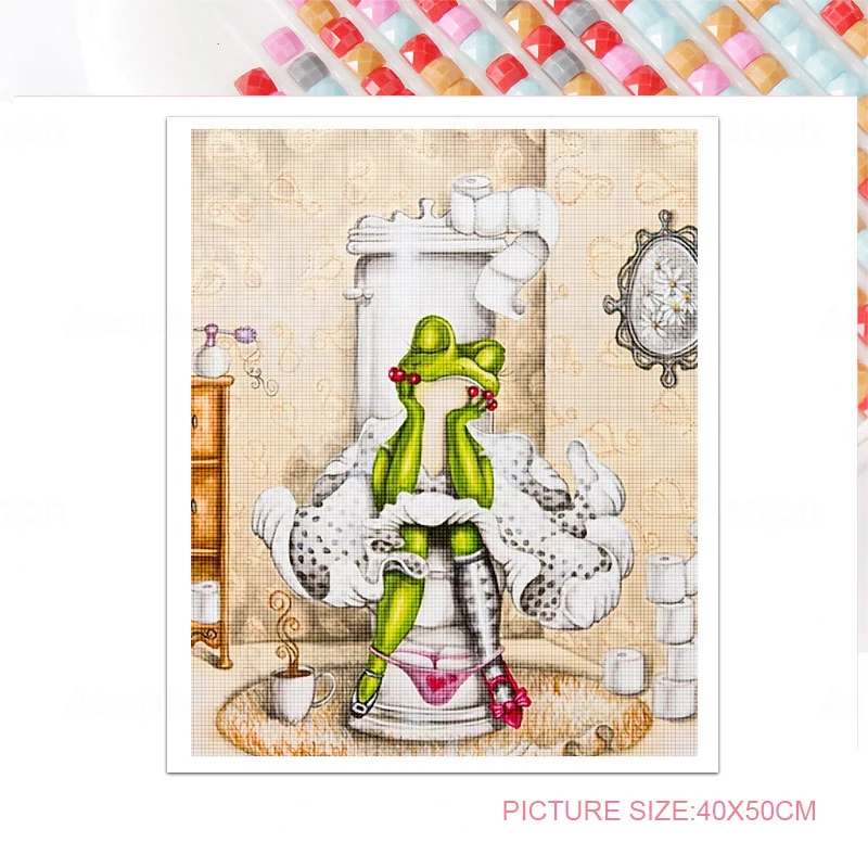 Забавная лягушка Diy 5D алмазная картина лягушка принять ванну полная квадратная и круглая настенная вышивка мозаика крест ручной работы домашний декор