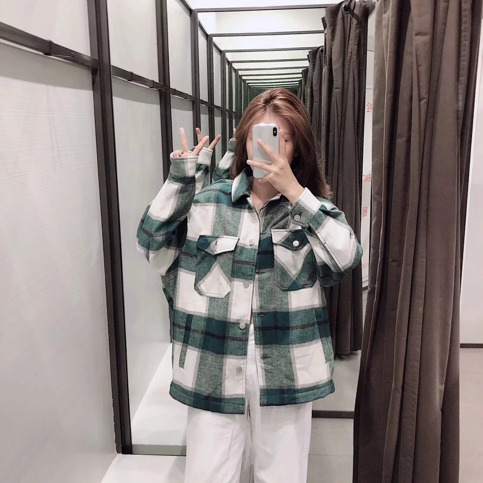 Женская клетчатая рубашка, зеленое пальто оверсайз с длинным рукаво...