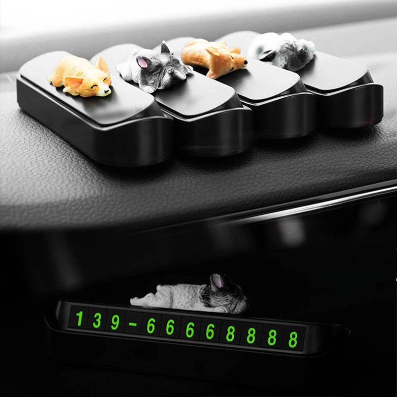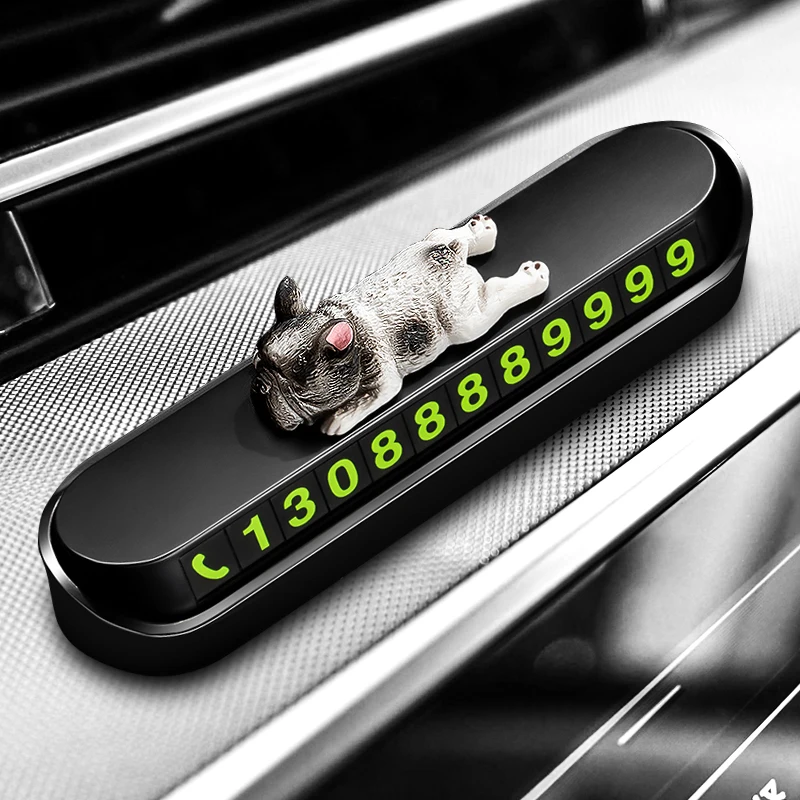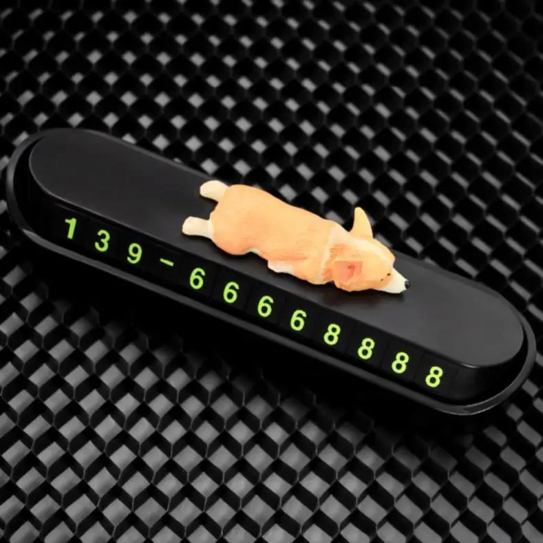 Автомобильный светящийся ночной номер телефона для мужчин, бульдог корги карточка с телефоном для временной парковки, стильная наклейка для автомобиля