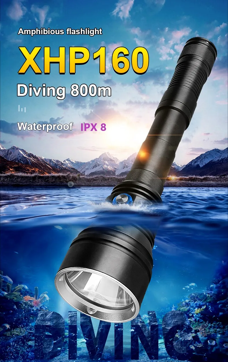 ????AliExpress новейший и яркий фонарик для дайвинга XHP160, IP68 водонепроницаемый, мощный перезаряжаемый светодиодный фонарик
