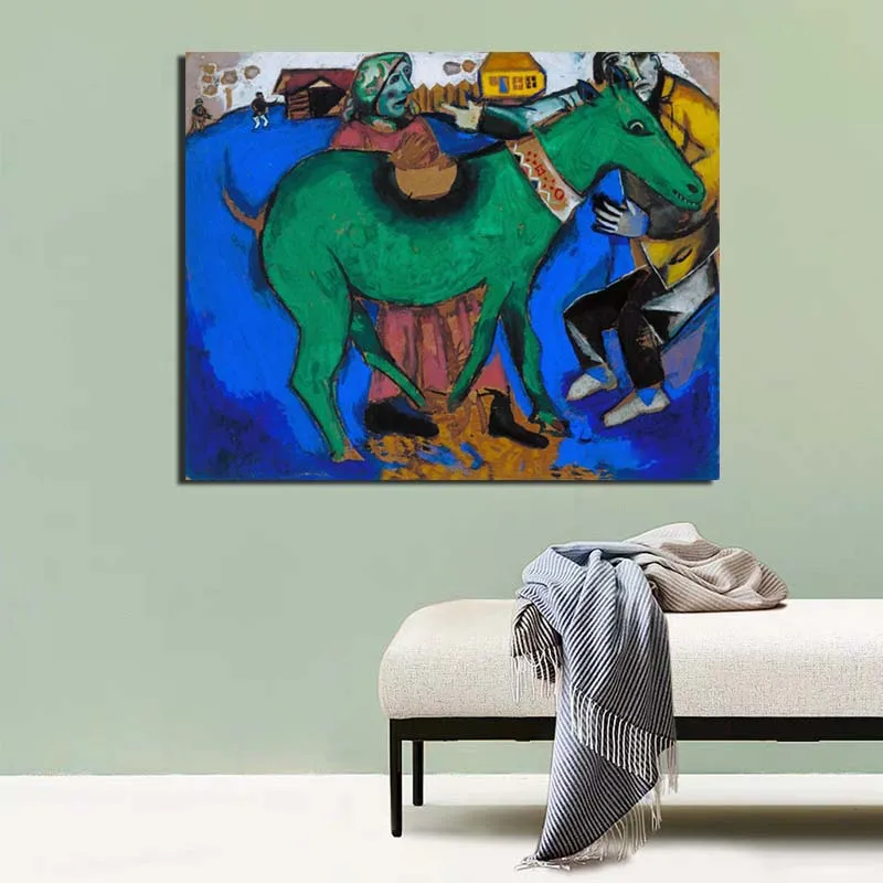 Настенная картина с изображением зеленого осла Марка Chagall, постеры на холсте, современная картина, настенные картины для гостиной, домашний декор