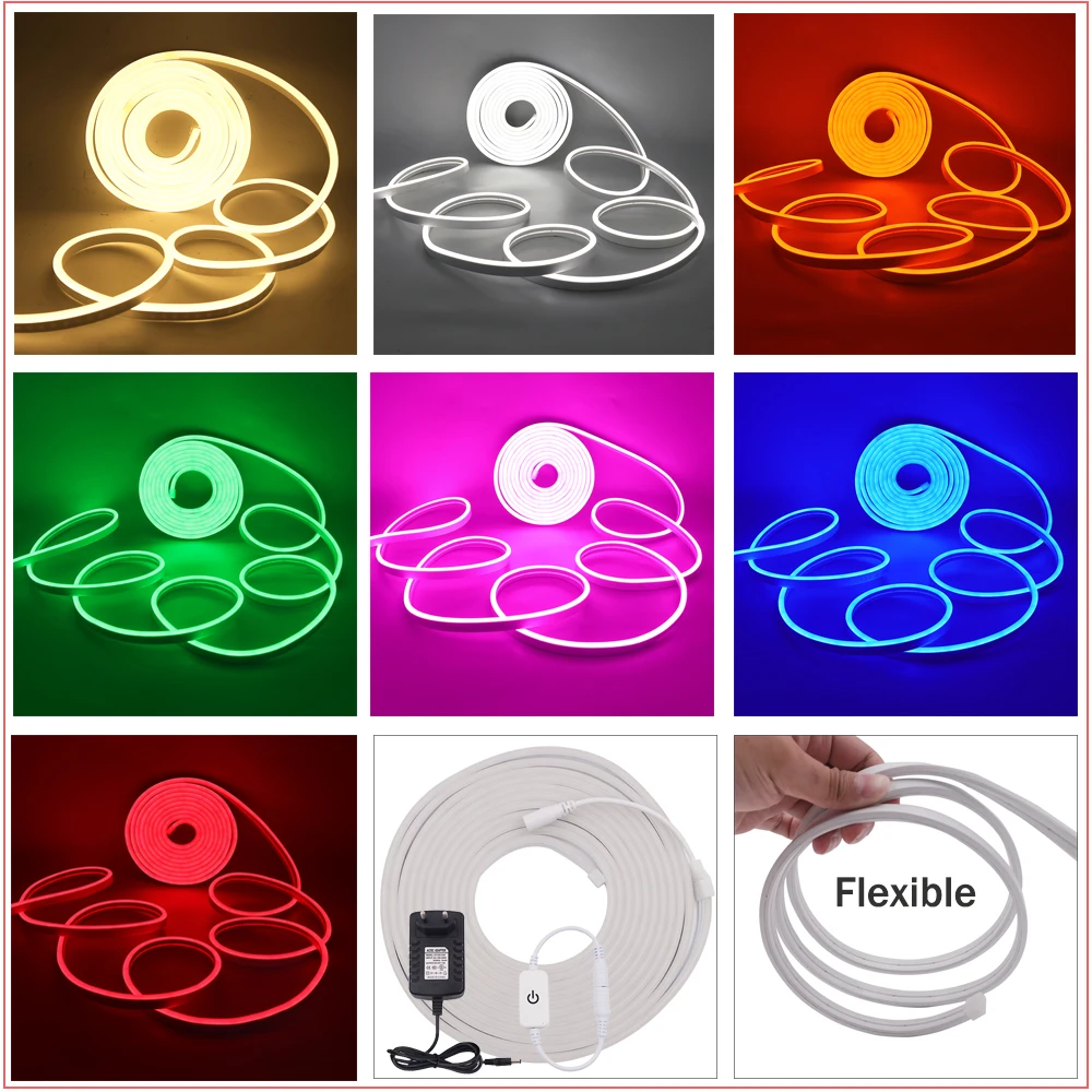 Светодиодный светильник с регулируемой яркостью DC12V неоновый светильник 2835 120 светодиодов лента Гибкая неоновая вывеска водонепроницаемый неоновый светильник с веревкой для украшения