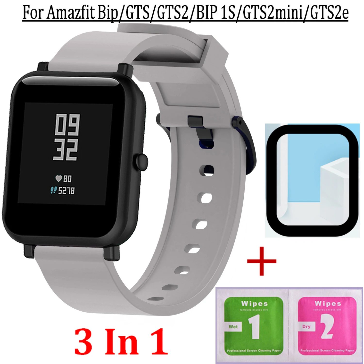 20 мм силиконовый ремешок на запястье для Huami Amazfit Bip/GTS/GTS2/BIP 1S/GTS2mini/GTS2e браслет защита экрана стекло PMMA