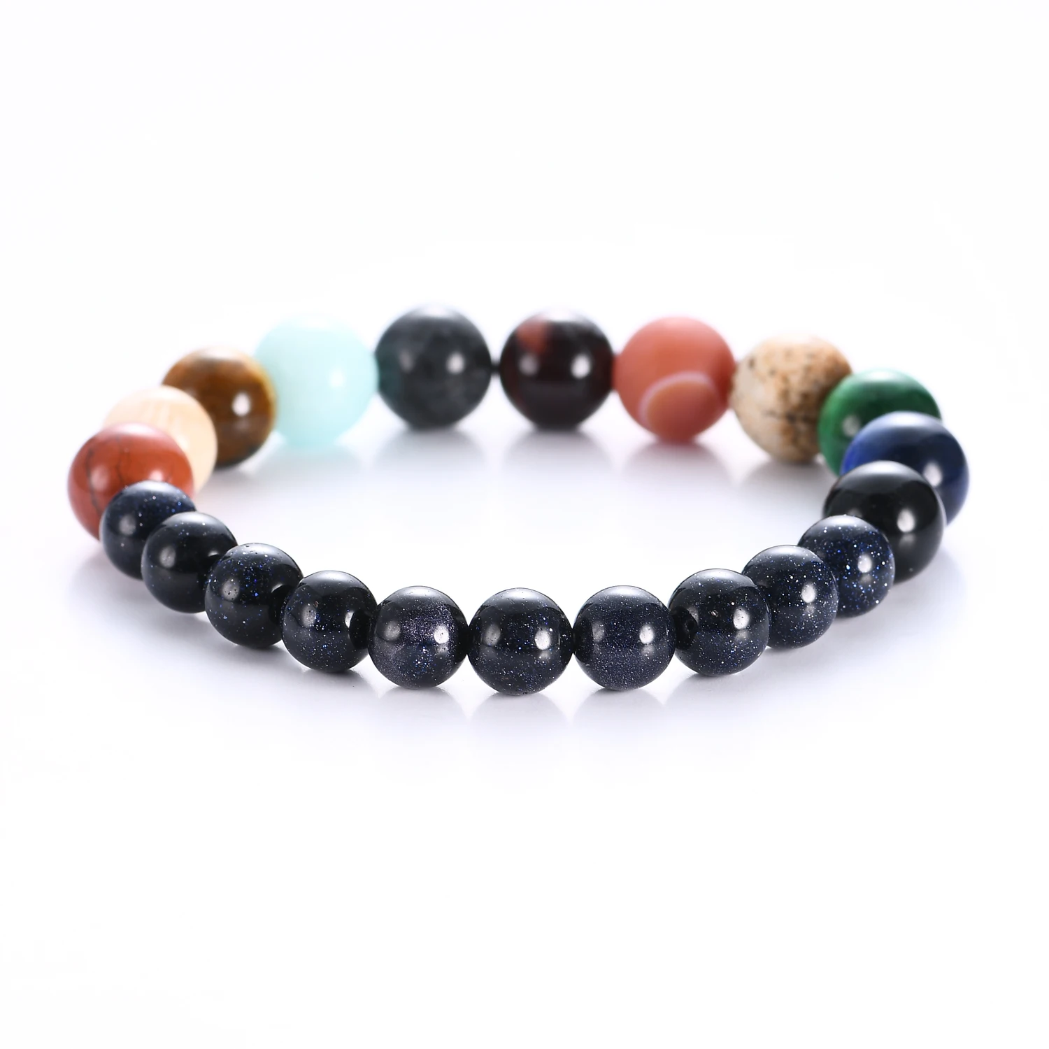 Браслет с бусинами в виде восьми планет для мужчин и женщин, Ювелирное Украшение с натуральным камнем, универсальная Йога, солнечная чакра, Подарочная бижутерия