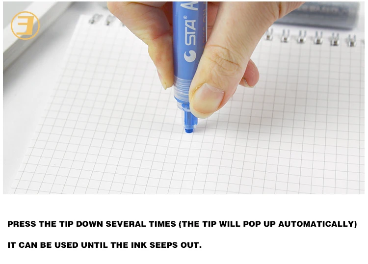 3. Наконечник ручки нажимается несколько раз, пока чернила не просачиваются. Необходимо обратить внимание на то, чтобы выпустить прессованные чернила (опреснение чернил) перед повторным нажатием, чтобы предотвратить чрезмерную утечку чернил.