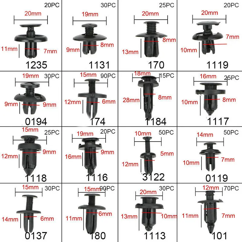 Универсальные автомобильные крепежные зажимы, 620 шт., смешанные ав...