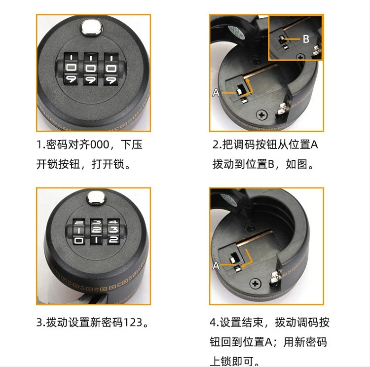 При сбросе пароля, если новый пароль забыт, замок открыть нельзя. Пожалуйста, запомните новый пароль.