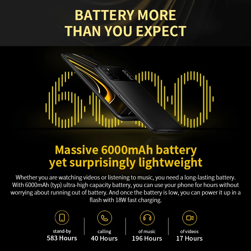 POCO M3 4GB 64GB 128GB Smartphone Snapdragon 662 Octa Core 6.53"display 6000mAh battery FHD+ Dot Drop display 48MP Triple Camera