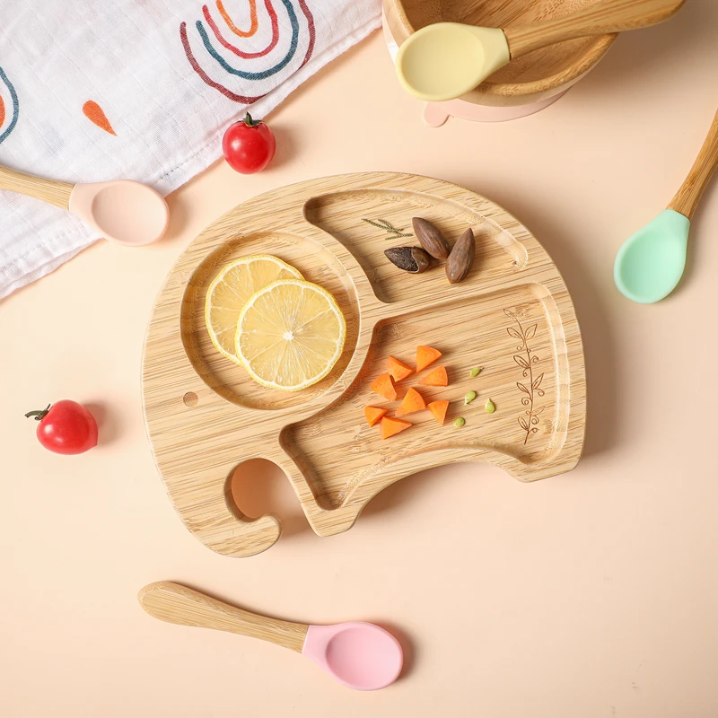 Bopoobo детские бамбуковые тарелки детские милые тарелки для кормления слона силиконовая присоска натуральный бамбук BPA бесплатная детская посуда