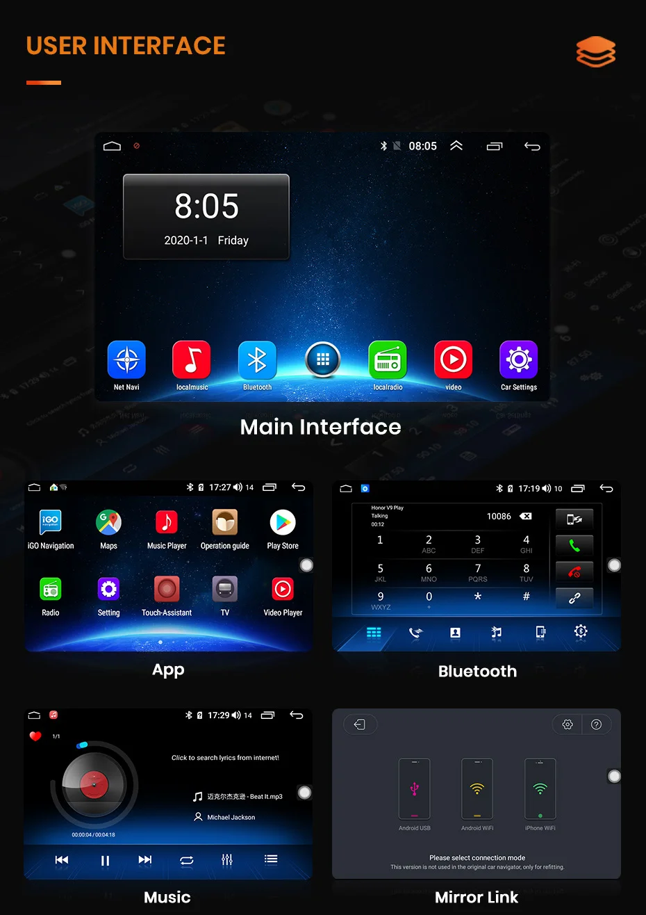 > Только для 4 Гб + 64 Гб версии> Этот DVD обеспечивает usb-разъем, который поддерживает подключение к телефону, легко управлять и обрабатывать Iphone через устройство. Он называется ZLINK в системе