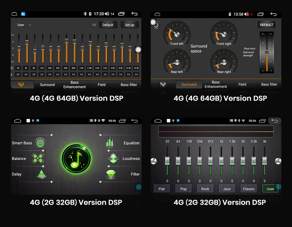 > Со встроенным усилением 4*50 Вт, музыка становится четкой даже при высоких томах.> По индивидуальному заказу звуковая с вашими личными предпочтениями с 9 графический эквалайзер. Поп, рок, джаз,Классический, плоский, пользовательский, голосовой. Несколько вариантов настройки позволяют адаптировать аудио опыт по своему вкусу.