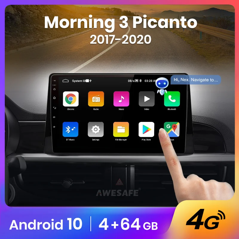 Автомагнитола AWESAFE PX9 для Kia Morning 3, мультимедийный видеоплеер на Android 2017, 2 Гб ОЗУ, 32 Гб ПЗУ, с GPS, для Kia Morning 3, Picanto 2020-10,0, Типоразмер 1 din