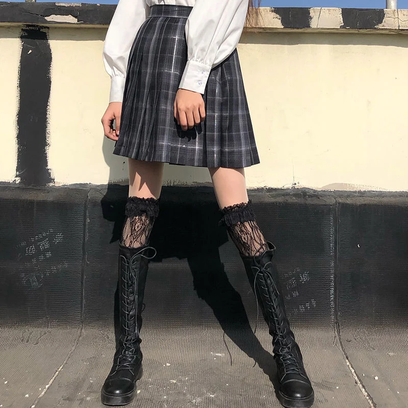 Женские длинные кружевные сетчатые носки выше колена Lolita, белые носки средней длины, тонкие студенческие носки Jk черного и белого цветов