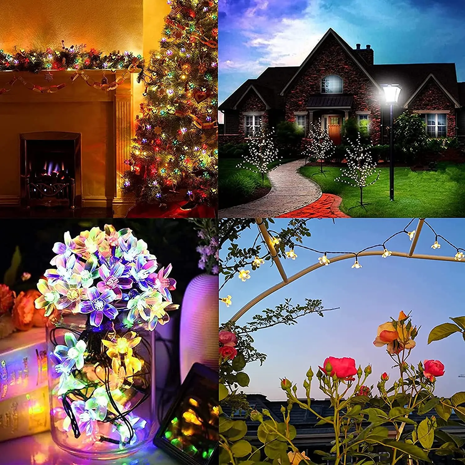 Гирлянда из 2050 светодиодов на солнечной батарее с цветами вишни