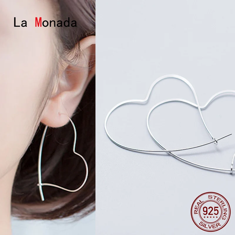 Серебряные серьги-кольца La Monada, маленькие женские серьги из серебра 925 пробы с большим сердцем для девушек, серьги для пирсинга