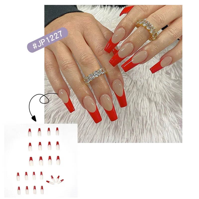 GAM-BELLE французские красные накладные ногти Экстра длинный гроб полное покрытие Искусственный пресс на ногти Красота DIY аксессуары для маникюра Особенности:12 различных размеров для разных пальцев, 2 наконечника для каждого размера.Для профессионального наращивания ногтей и французского маникюра.Легко использовать с клеем для ногтей или желе двухсторонние клейкие ленты.Легко обрезать и прикрепить их к любой длине и форме, которые вам нравятся.Французские красные накладные ногтиМатериал: АБС-пластикСтиль: накладные ногти с полным покрытиемПакет включает в себя: 24 шт./компл. накладные ногти + 1 мл клей для ногтейСоветы по использованию:1. Вырезайте, напиливайте и формируйте собственные ногти.2. Очистите свой собственный ноготь.3. Выберите подходящий кончик, сравняя ширину вашего естественного ногтя.4. Приклейте наконечник на ногтевую пластину.5. Выровняйте и формируйте кончик.6. Начните применять УФ-гель или лак для ногтей. 1. Товар будет отправлен в течение 1-7 рабочих дней после подтверждения оплаты.2. Время доставки зависит от места назначения. В некоторых случаях из-за строгих таможенных правил доставка может занять немного больше времени. Пожалуйста, будьте терпеливы.3. Мы не несем ответственности за любые местные пошлины или налоги. Пожалуйста, будьте внимательны, когда указывайте свой АДРЕС при оформлении заказа. Срок доставки обычно составляет 18–35 рабочих дней при отправке воздушным транспортом, экспресс-доставка производится в течение 8–12 дней.4. Иногда это может быть дольше из-за плохой погоды, пустой траты времени на таможенное оформление. Поэтому наберитесь терпения если вы не получили товар вовремя.