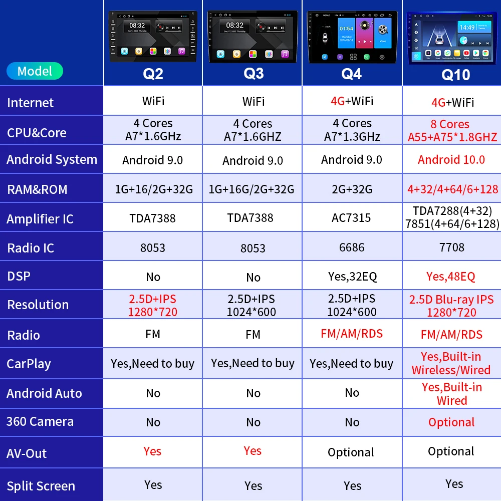 Function 2Q4/Q10 supports 4G WiFi Q2/Q3 suooprt WiFi