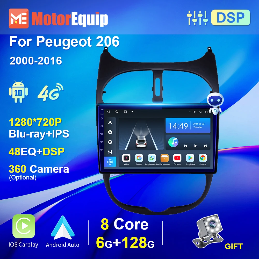 Автомобильный радиоприемник 48EQ DSP для Peugeot 206 2000-2016 Android 10 IPS GPS навигация Авто BT 4G WiFi Carplay мультимедийный плеер no 2 Din