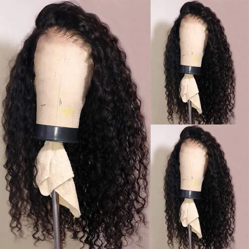 Парик из кудрявых человеческих волос, парик с глубоким кудрявым кружевом спереди светильник-коричневый топ, швейцарские кружева, полный объем, предварительно выщипанные Детские волосы для черных женщин