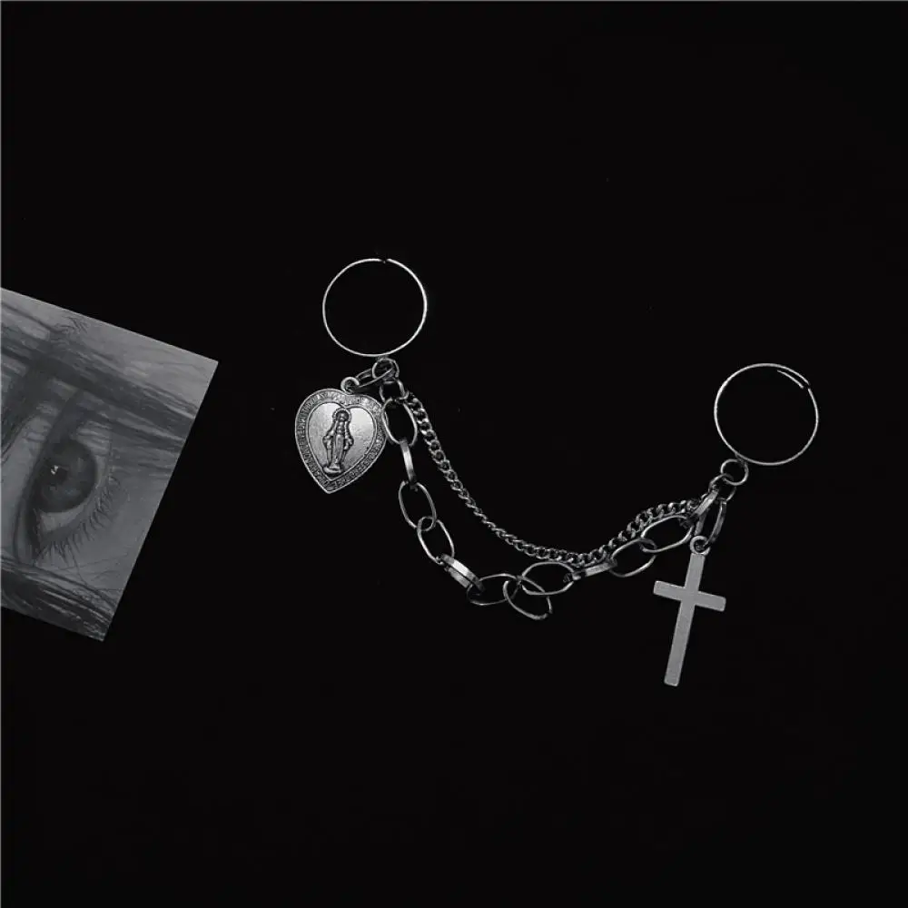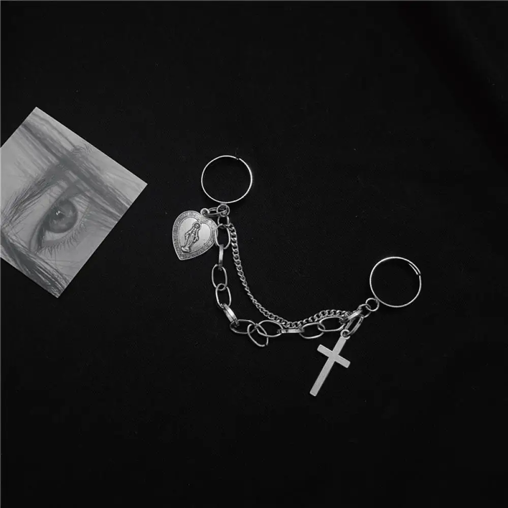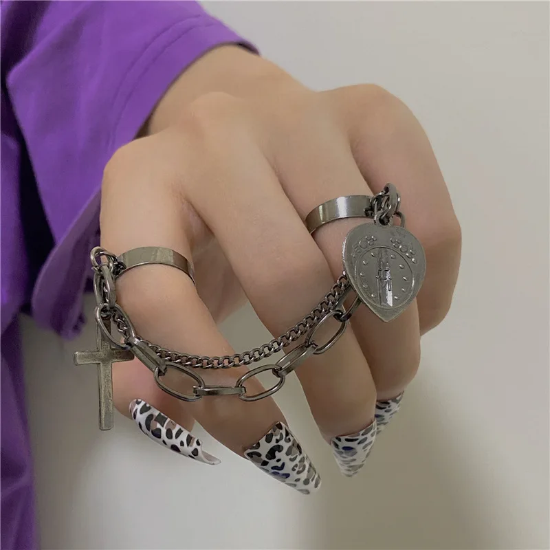 Кольцо в стиле ретро, панк, хип-хоп, с крестом, цепочка на палец, регулируемое, с двумя звеньями, ювелирные изделия, подарок, мужские, женские, готические украшения, кольца, новинка