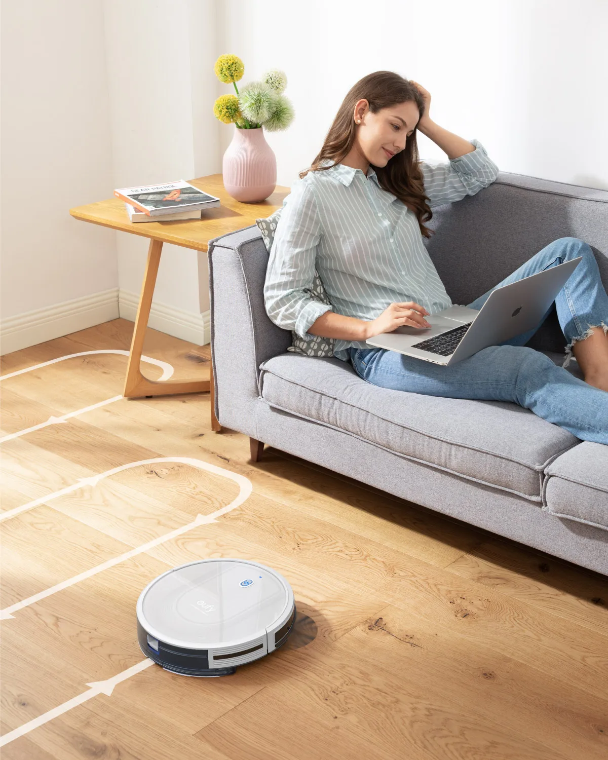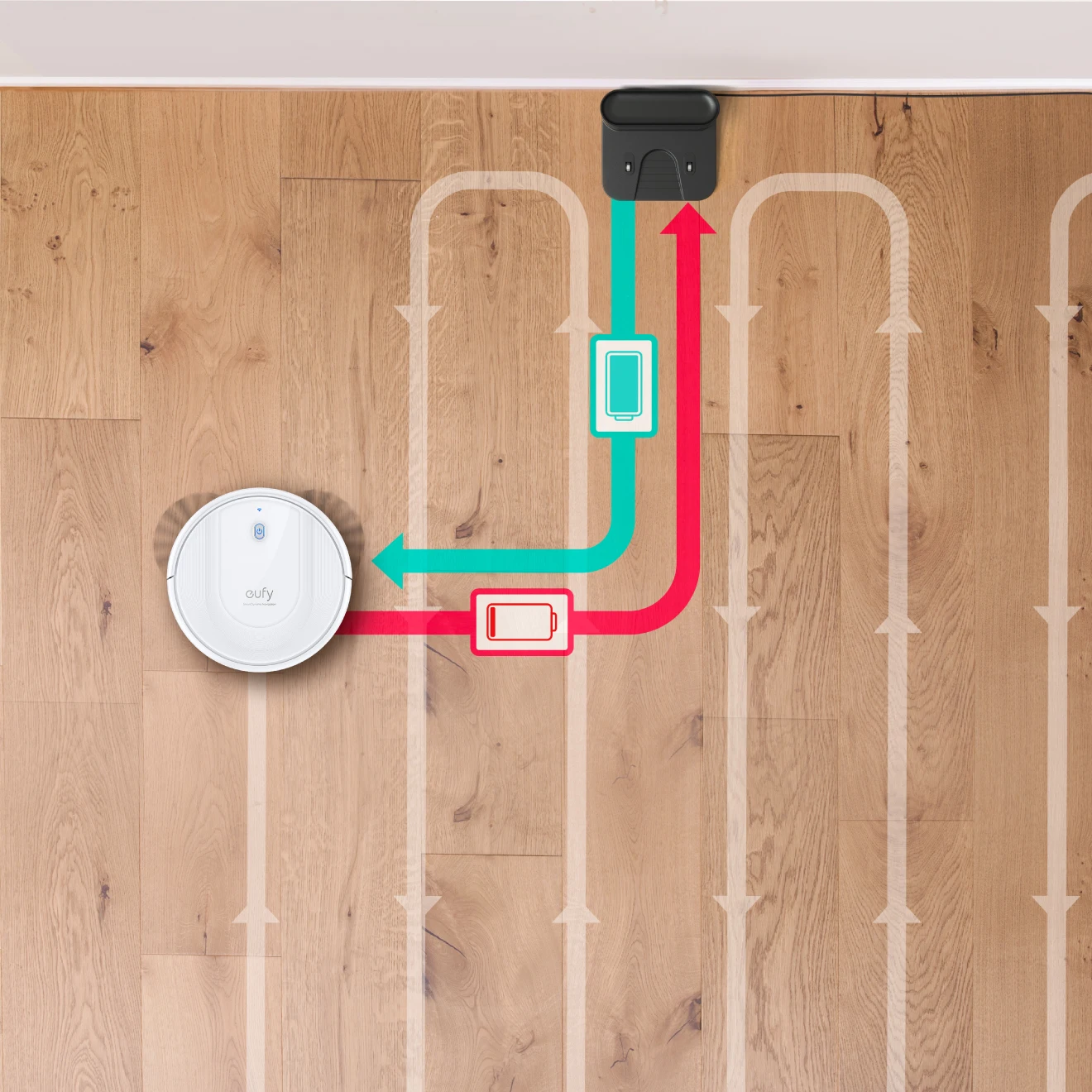 Робот-пылесос Anker Eufy RoboVac G10, блок для влажной уборки, база для зарядки, водонепроницаемая подкладка, пульт ДУ, инструмент для очистки волос, запасные боковая щетка и фильтр, адаптер питания, документация