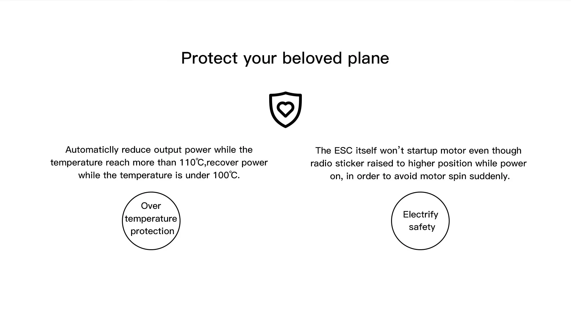 8. Безопасная защита от перегрузки: когда температура ESC превышает 110 градусов C, ESC уменьшит выходную мощность, чтобы охладить.