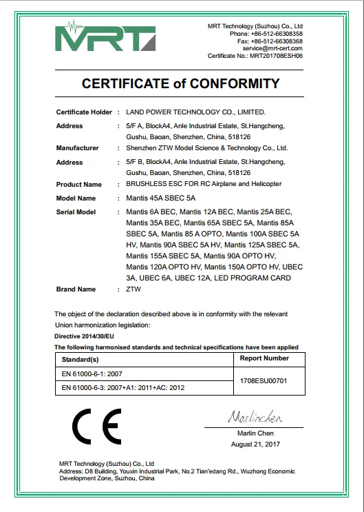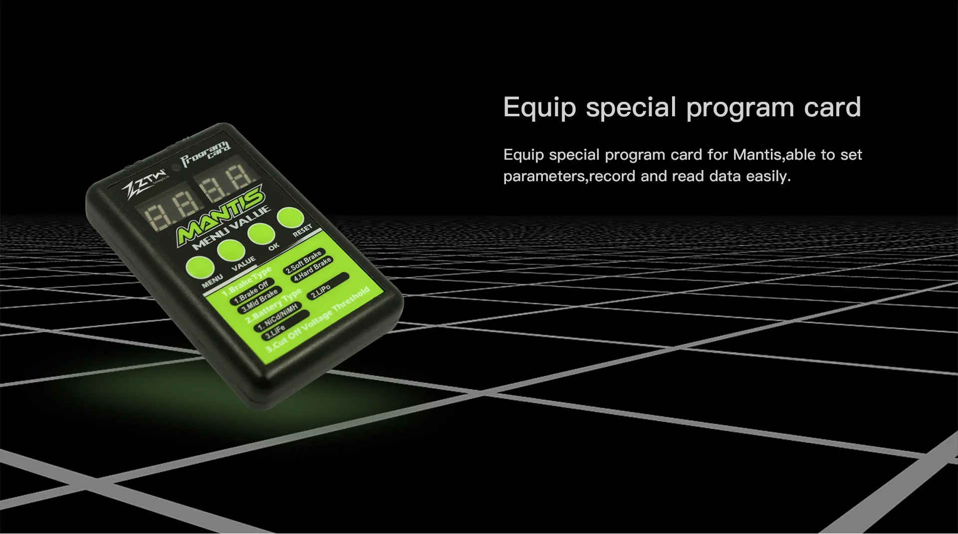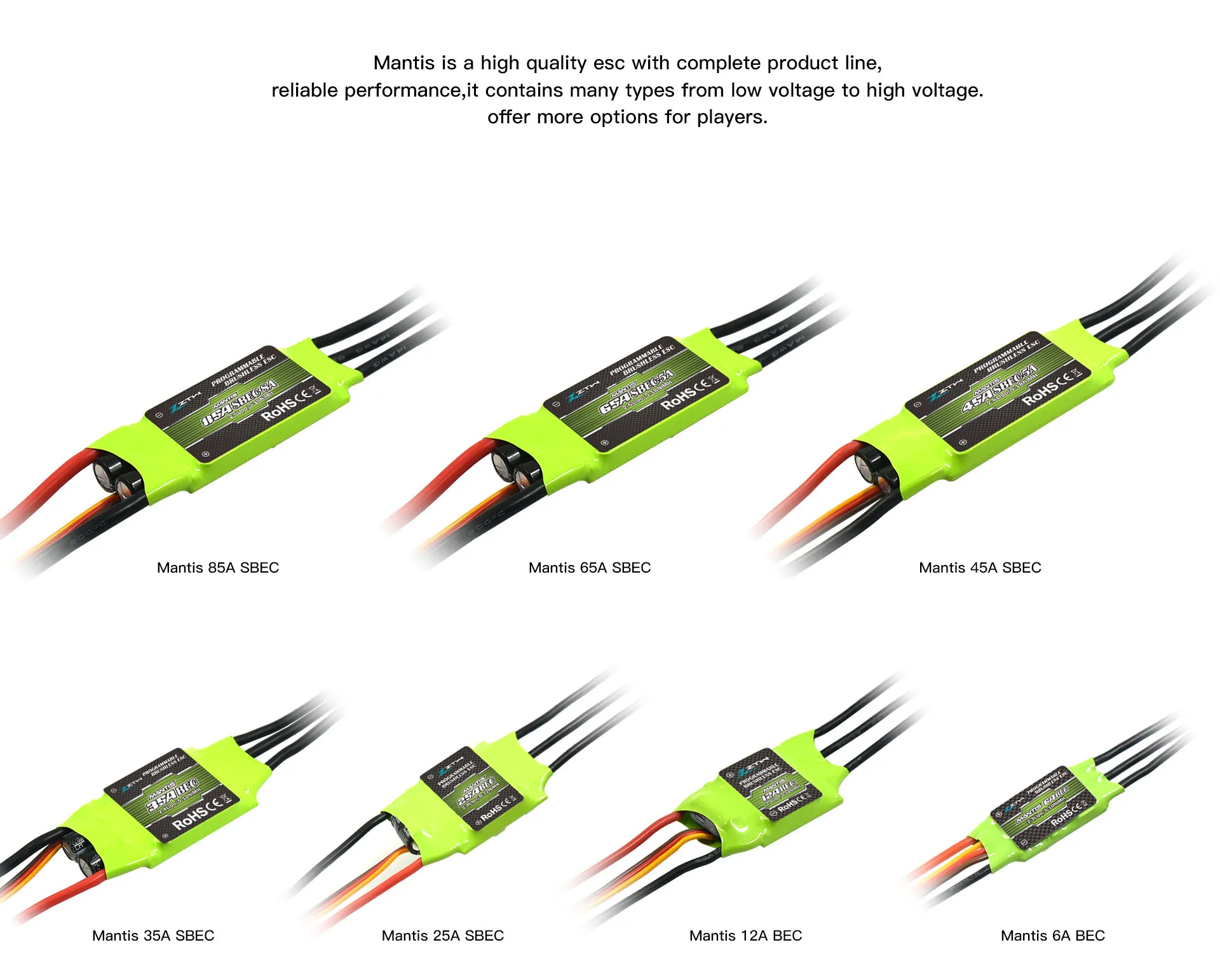 ZTW Mantis серии ESCsПредназначены как для начинающих, так и для продвинутых моделей. Их производительность и стабильность были одобрены дистрибьюторами и пилотами по всему миру. Mantis ESCs имеет компактный размер, легкий вес, супер плавный запуск и линейность дроссельной заслонки, несколько режимов защиты и многое другое. Все эти функции делают Mantis Series ESCs идеальным контроллером скорости среднего уровня для летчиков парка, спорта и аэробики.