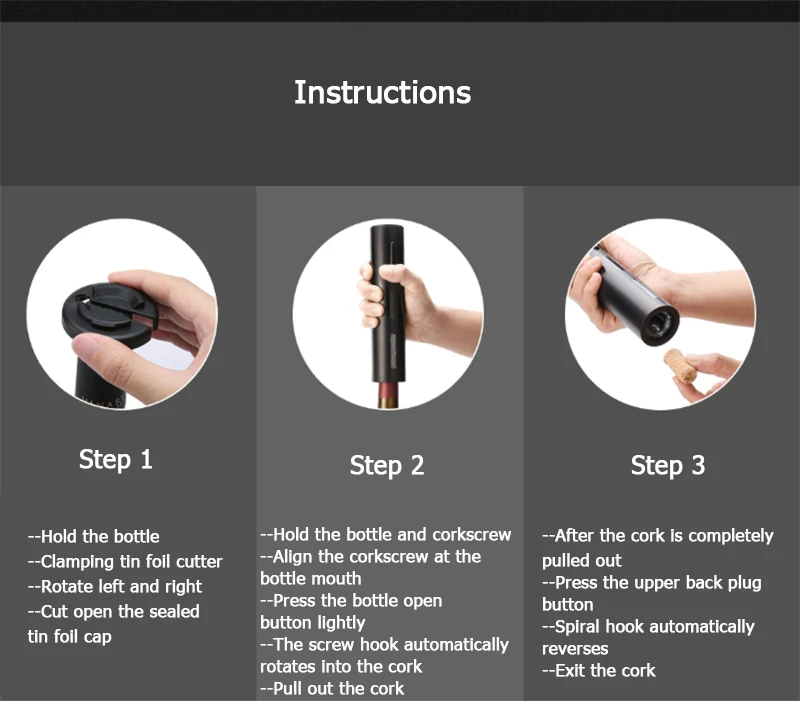 ▪Простота в использовании: Простое управление нажатием кнопки, нажмите кнопку «вниз», чтобы вынуть пробку из бутылки вина, нажмите кнопку «вверх», чтобы удалить пробку из открывателя вина.▪Элегантный дизайн: уникальное прозрачное окно делает весь процесс удаления пробки визуальным. Фольга резак включен для легкого удаления уплотнений.▪Лучший подарок для любителей вина: открывалка для вина может стать идеальным подарком для любого случая, как Рождество, день рождения, День благодарения, юбилеи, День Святого Валентина, выпускной и многое другое!