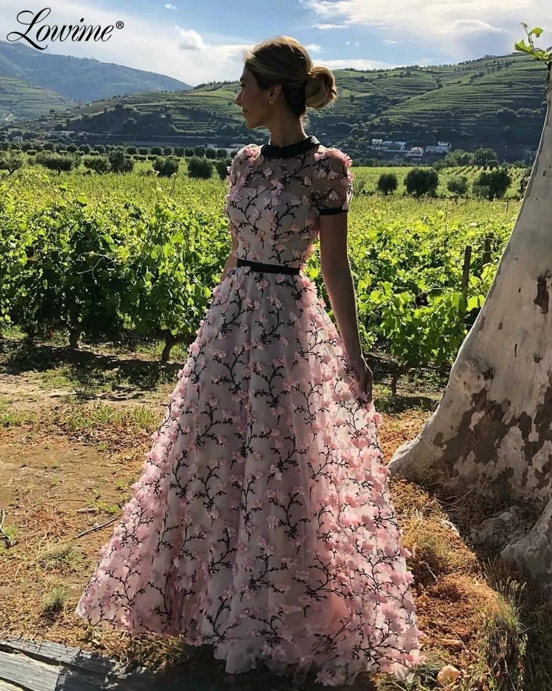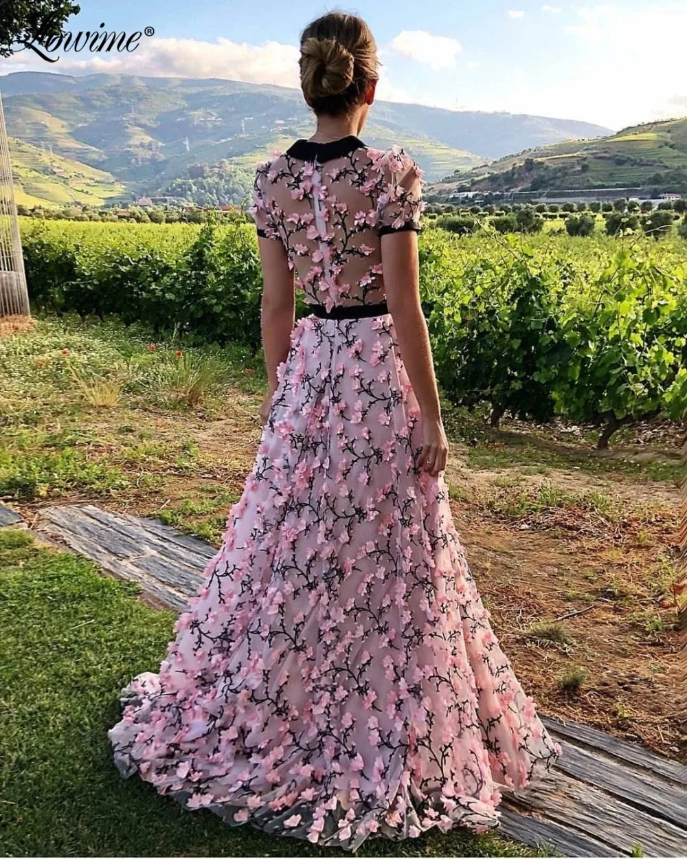 Женское вечернее платье с длинным рукавом, розовое ТРАПЕЦИЕВИДНОЕ ПЛАТЬЕ с цветочным принтом, платье для свадьбы или выпускного вечера, индивидуальный пошив