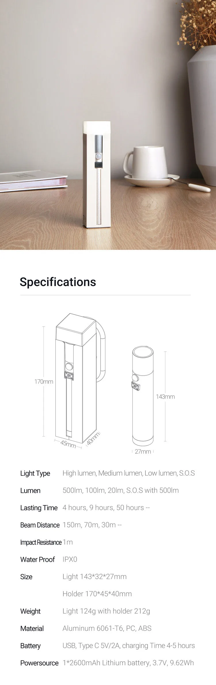 Многофункциональный индукционный светильник NexTool светильник датчиками, аварийный внешний аккумулятор, удобный в использовании умный фонарь