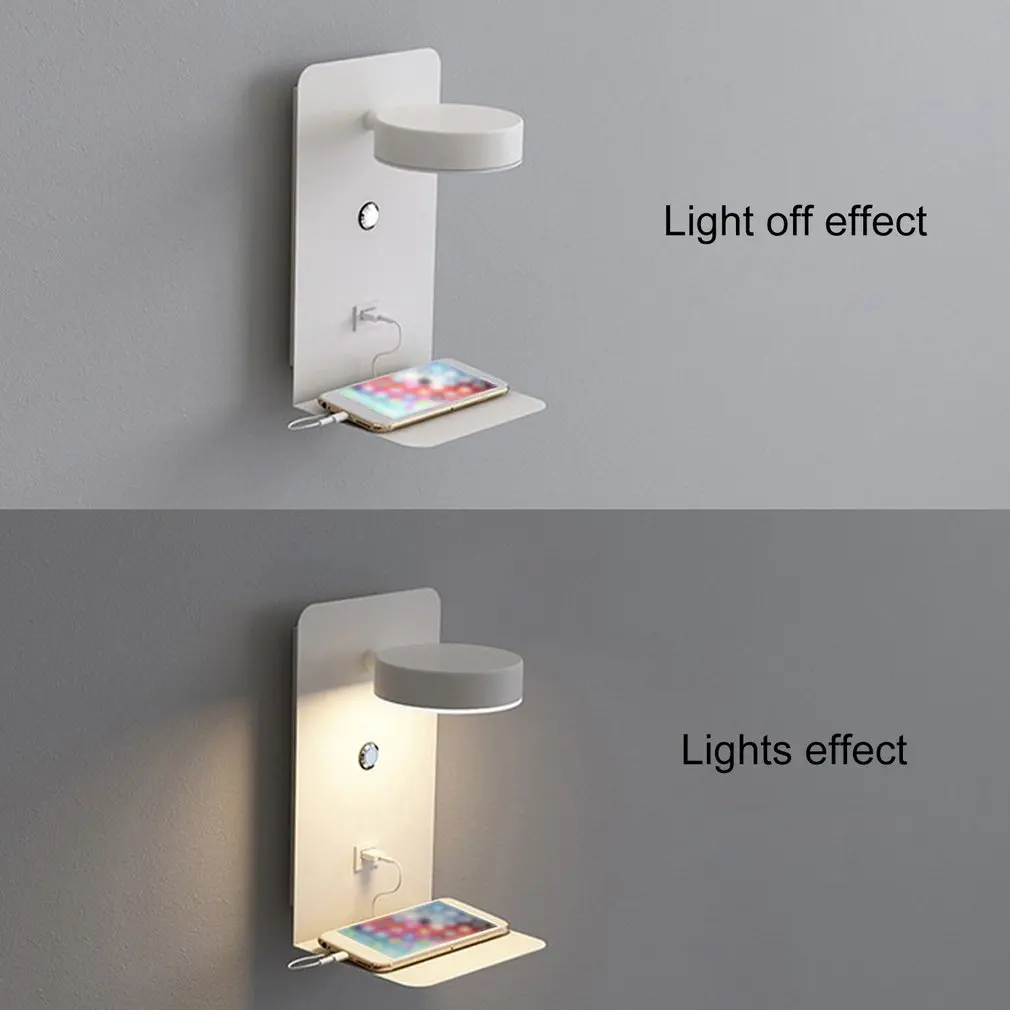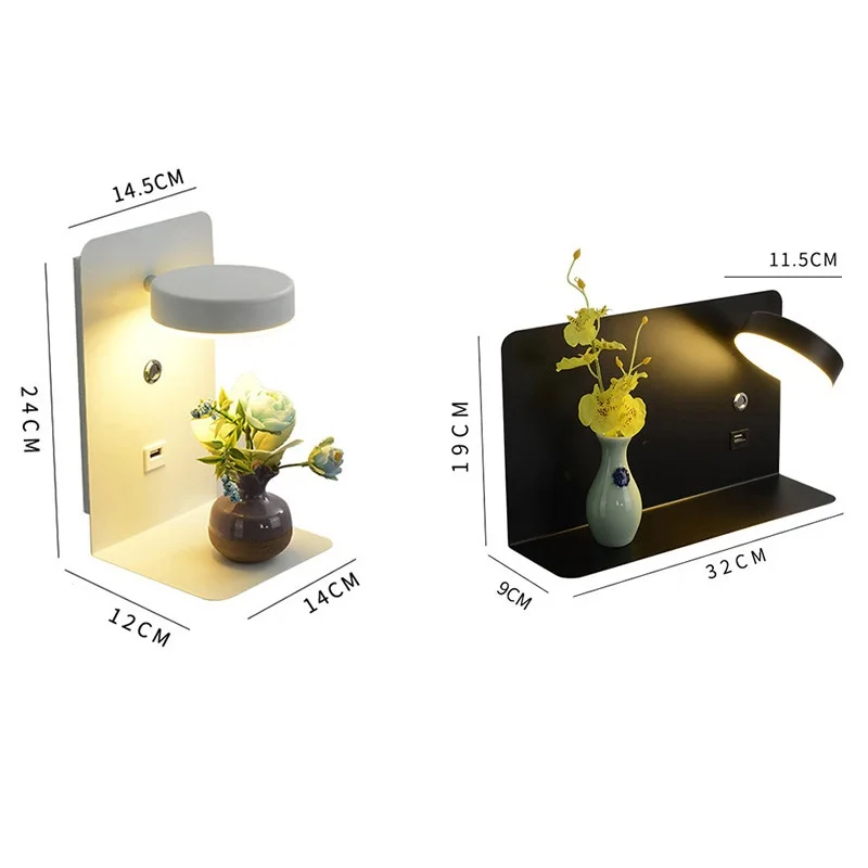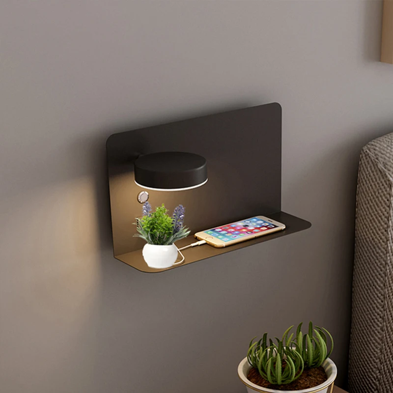 Современные регулируемые прикроватные Настенные светильники на 360 градусов С ВКЛ.ВЫКЛ., 5 В постоянного тока, USB интерфейс, полка, зарядка, светодиодный светильник для спальни, ночные светильники