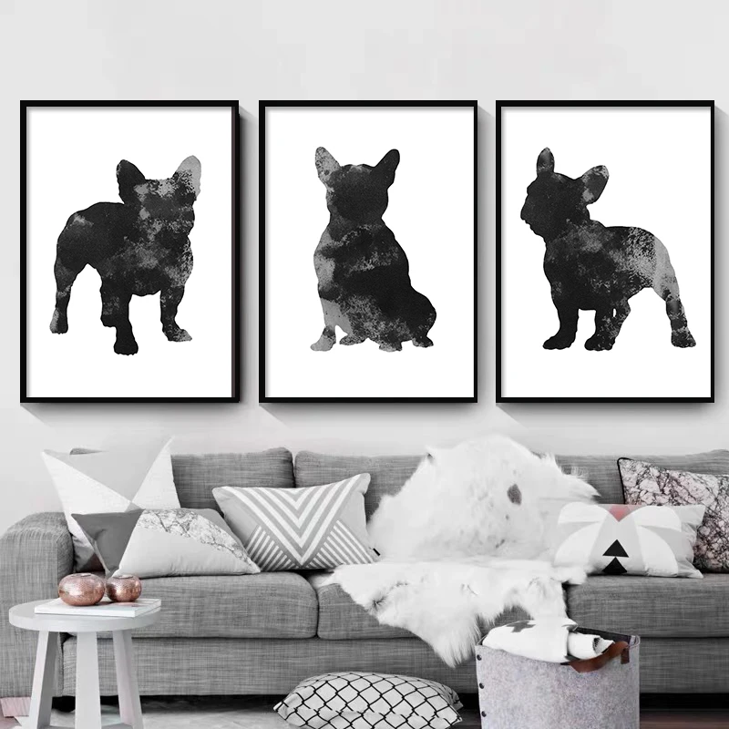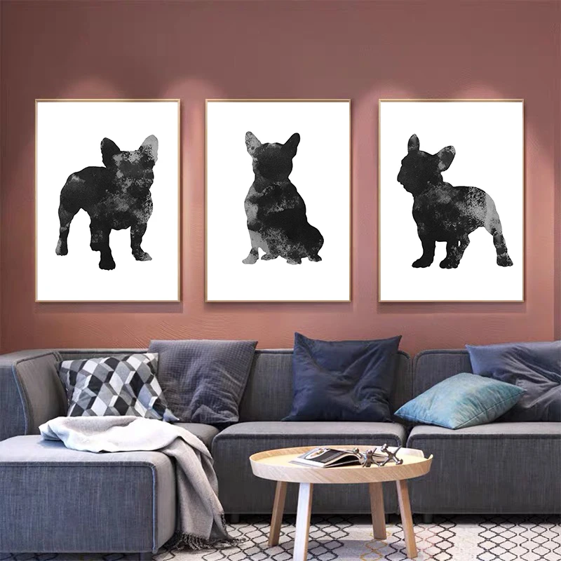 Современный простой скандинавский животный Черный Французский бульдог мозаичный узор холст картина Печать постеры для детской комнаты Декор без рамки