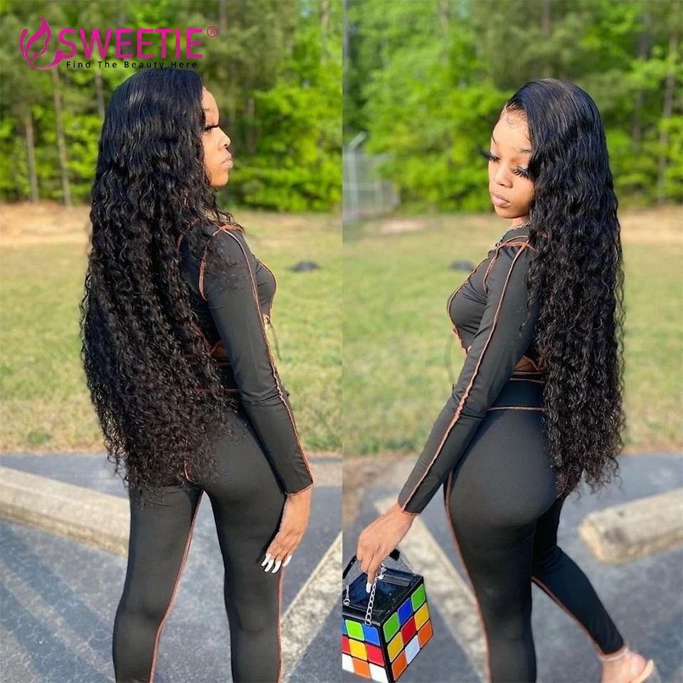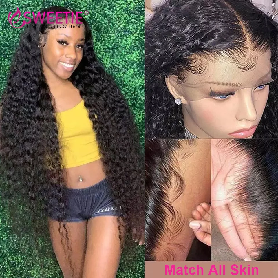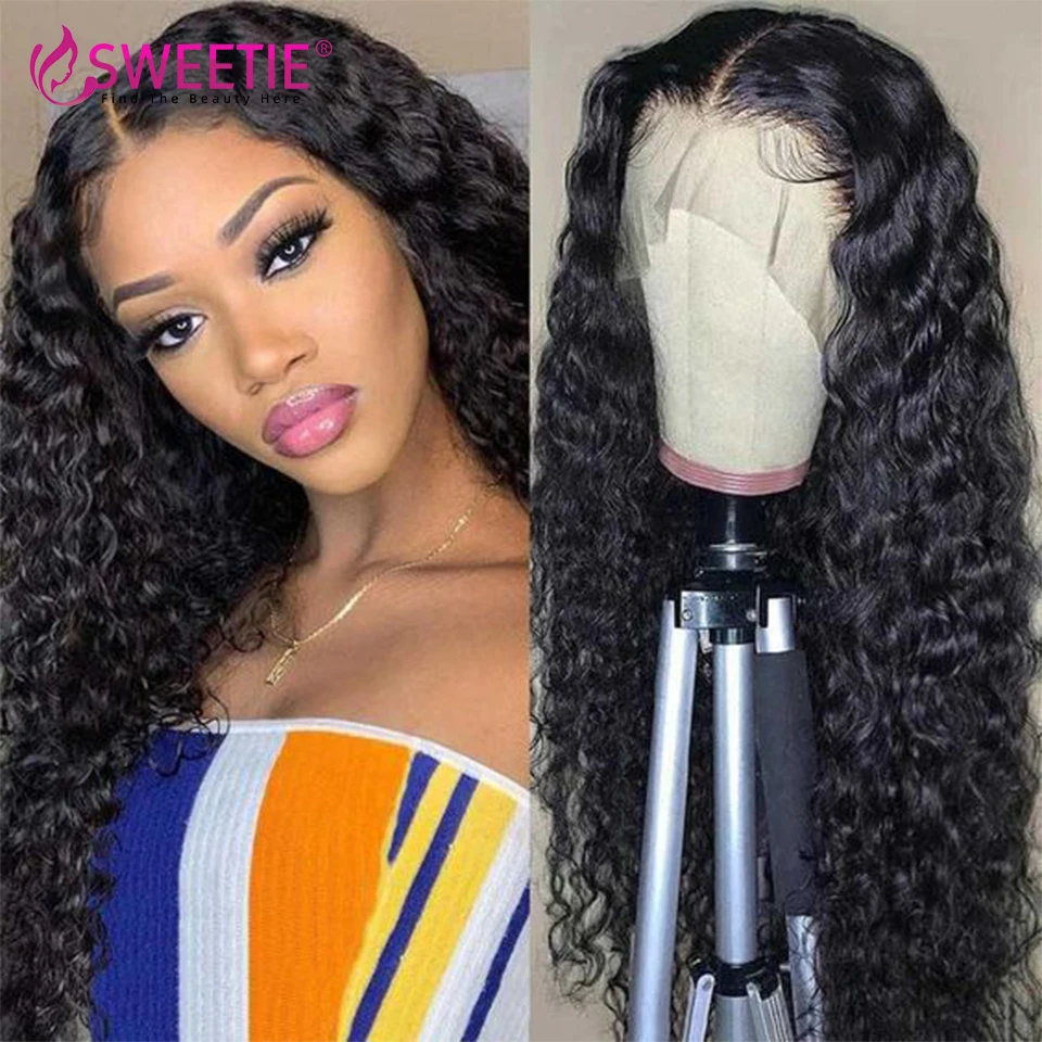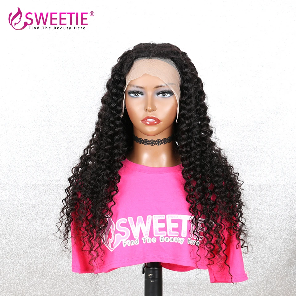 Sweetie бразильские 180 Плотность 13x1 T кружево глубокие волны Remy человеческие волосы кружева парики для женщин глубокие вьющиеся прозрачные T кружева парик 28 дюймов