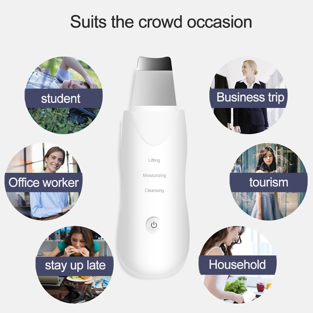 Ультразвуковое очищающее средство для пор, удаление черных точек и морщин на горячей омертвевшей коже, массажный скребок, вибрирование, Глубокая очистка лица, лопатка для красоты