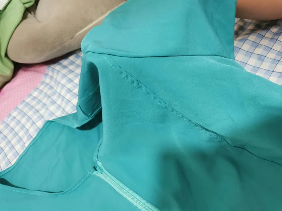 Это как на фото, единственным недостатком является то, что ткань сильно морщится, для летнего сезона это здорово, потому что у нее очень тонкая и свежая ткань. В остальном хорошо