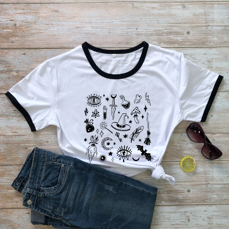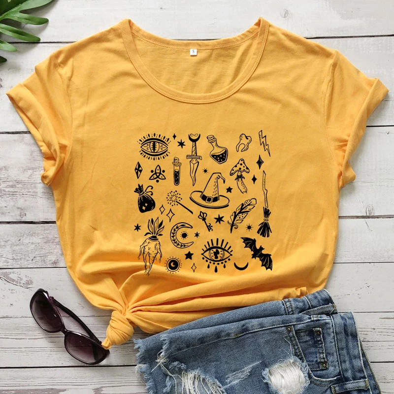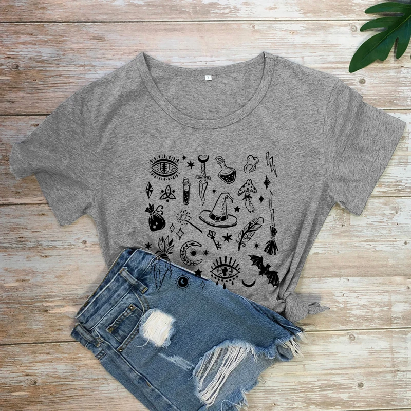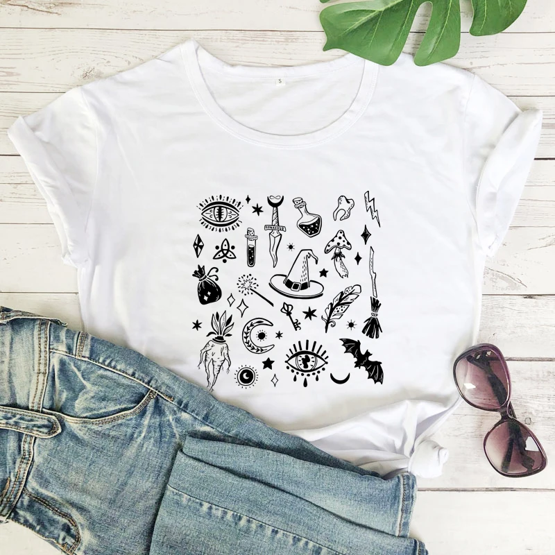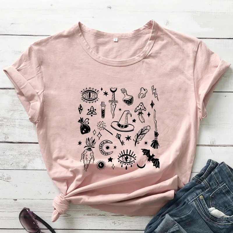 Футболка женская с рисунком ведьмы, мистическая рубашка с изображен...