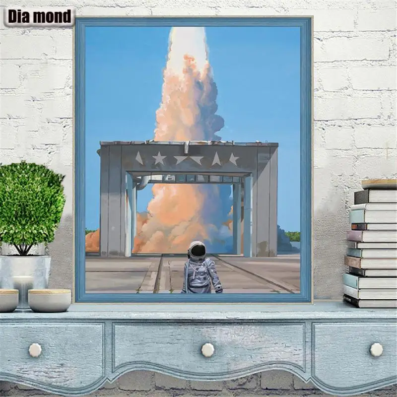 Полноформатнаякруглая алмазная живопись, пейзаж космоса, алмазная вышивка, астронавт, мозаика, вышивка крестиком, украшение для дома
