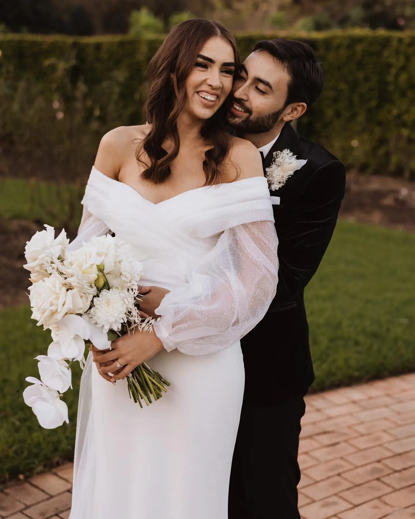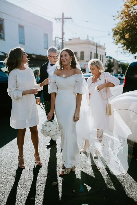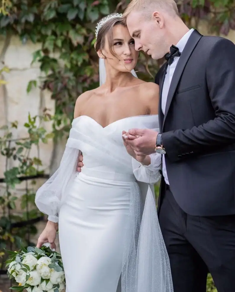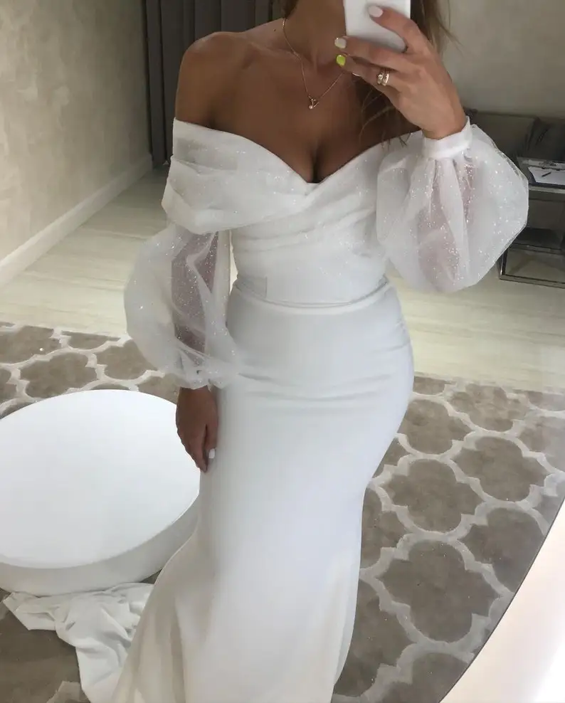 Женское свадебное платье с юбкой-годе, длинным рукавом-фонариком и открытыми плечами