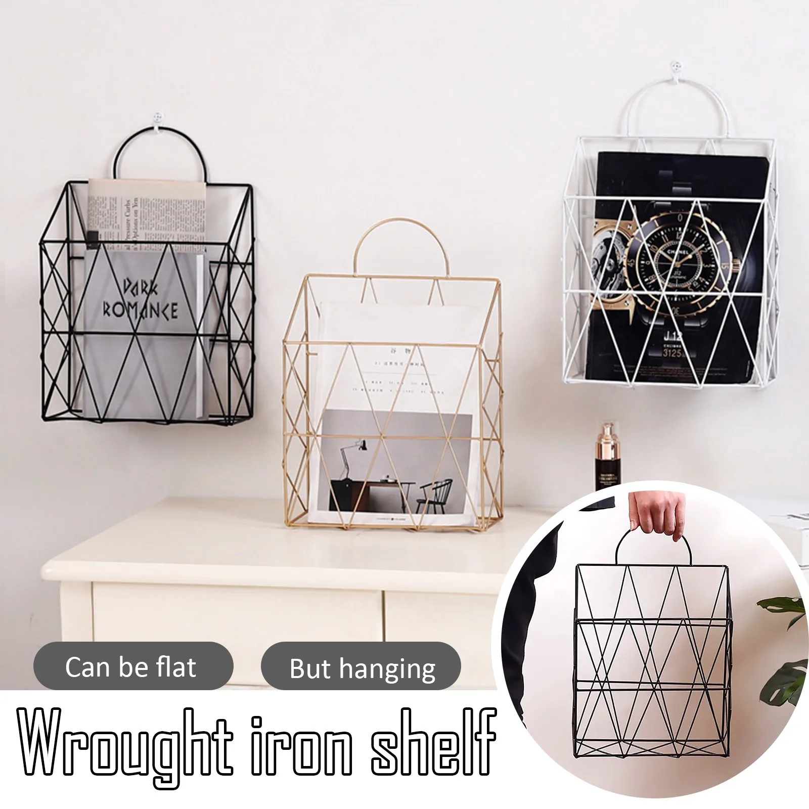 Домашняя организация для хранения, настенные стеллажи для гостиной, украшения для террасы, держатель для газет и файлов, металлические геометрические аксессуары