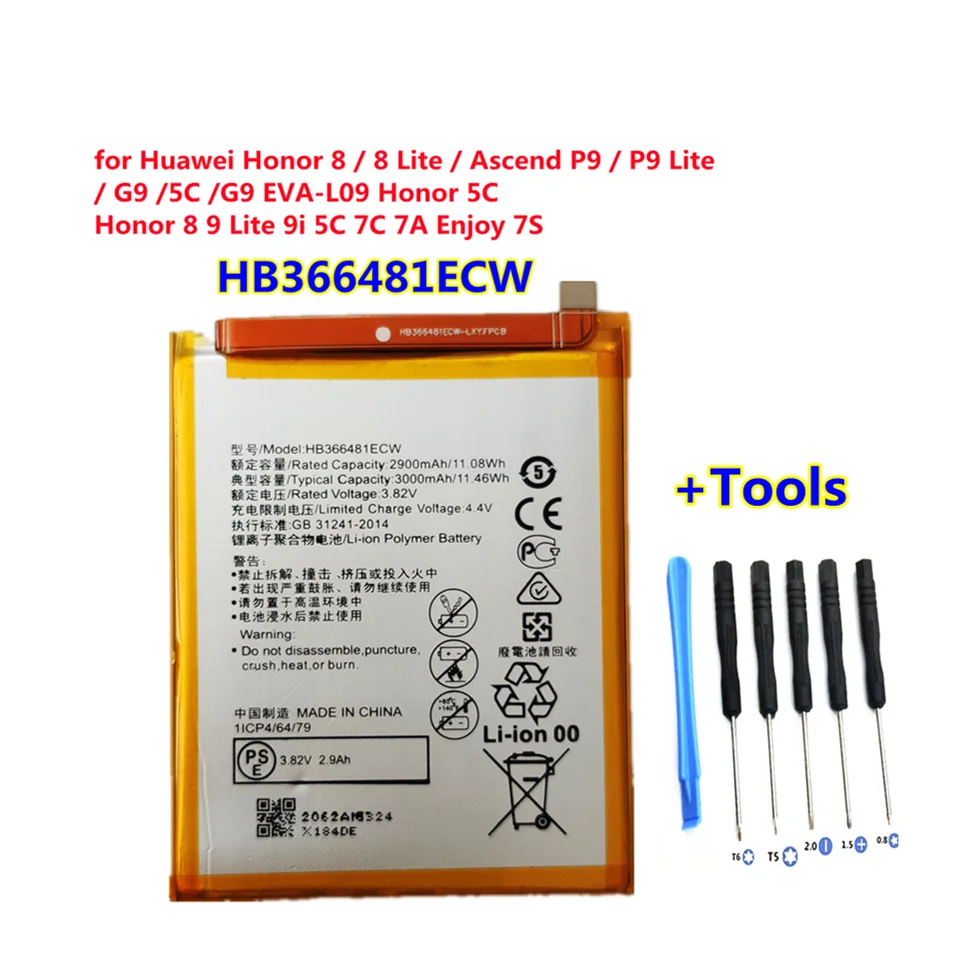 Новый аккумулятор HB366481ECW для смартфона Huawei Honor 8 8 Lite Ascend P9 P9 Lite G9 5C G9, 3000 мАч