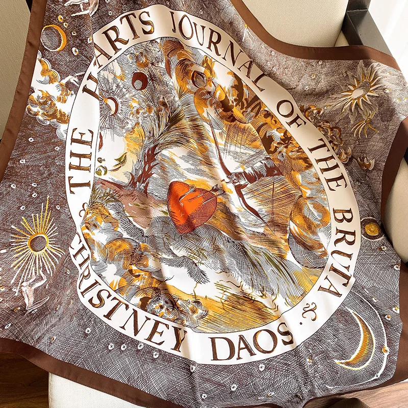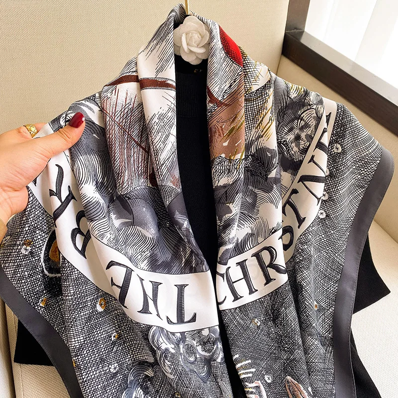 Классический большой квадратный шарф 90 см, Женский саржевый принт ...